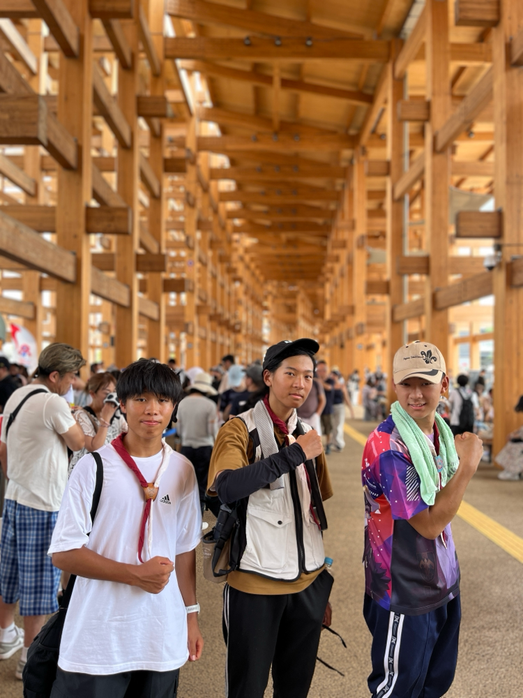 2025/08/13 万博まで チャリで来た! ベンチャー隊の3人のスカウトが、津幡のスカウトハウスから、300km、大阪関西万博まで、自転車🚲で走破してきました! 1日約100kmずつの行程で、豪雨にも負けず、暑さにも負けず、途中でテント泊もしつつ、石川→福井→滋賀→京都→大阪とケガもなく無事に辿り着けました! 大阪に到着! 晴れ晴れとした表情☺️ tagPlaceholderカテゴリ: ベンチャー隊